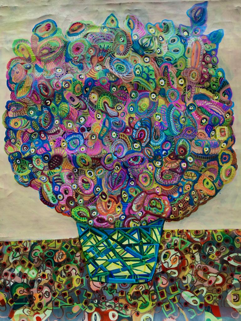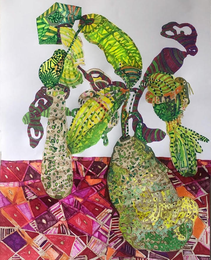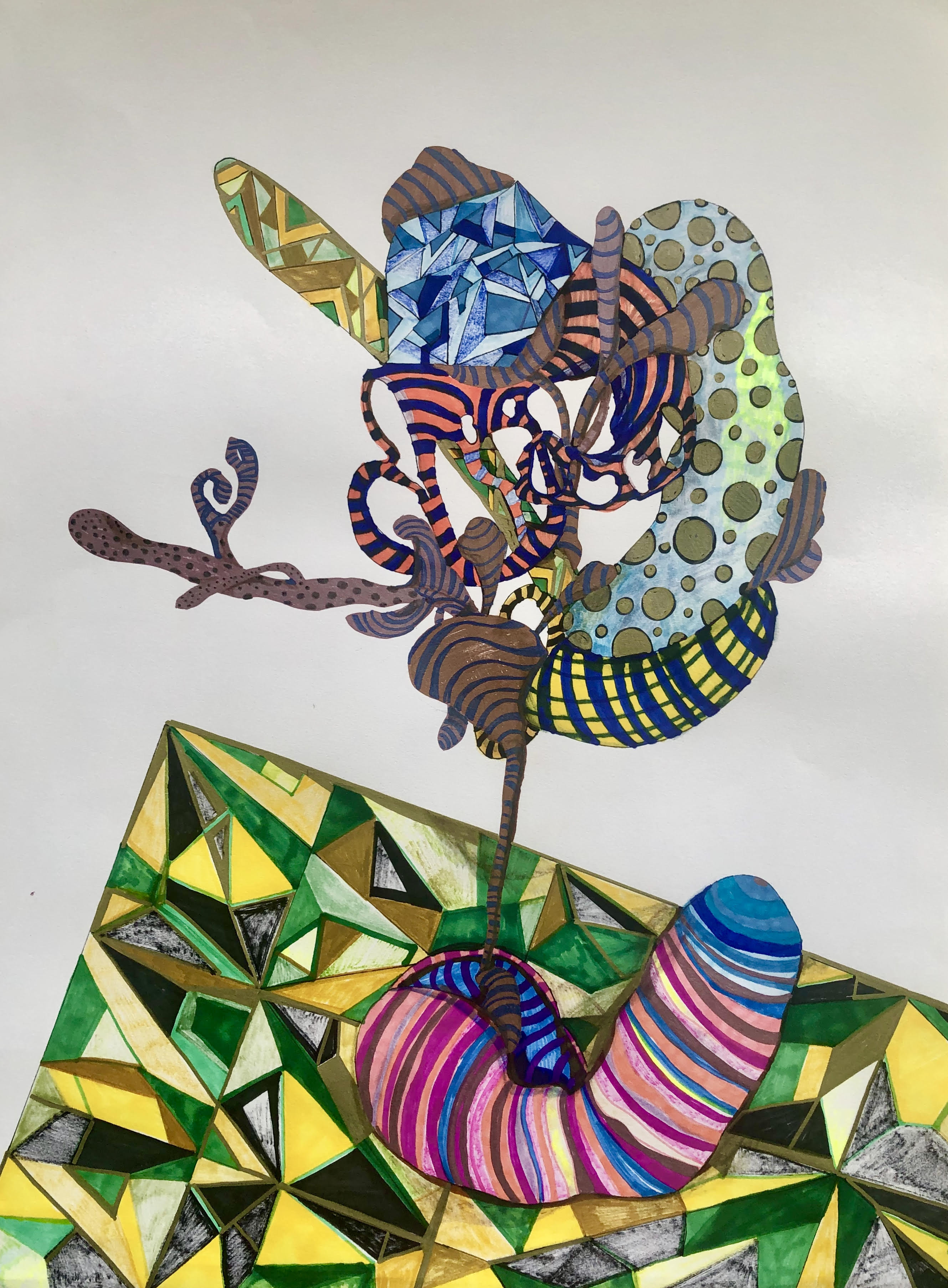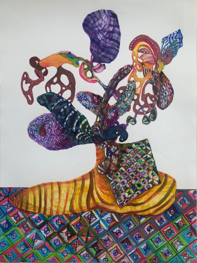 Drawing, ink and painting on watercolor paper, 24”X18”.
