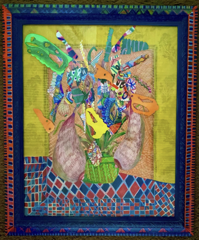 Selvática / Sylvan . 2018. Drawing collage and painting, intervene frame. Inks, Acrylics on paper and wood. 20″X 24″