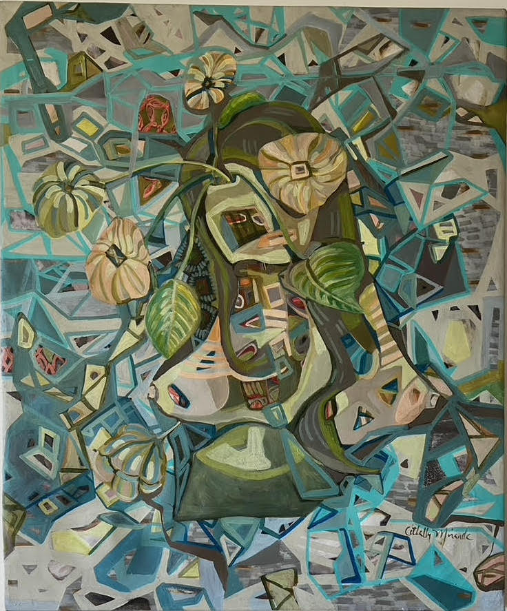 Vasija cubista, Acrylics on fabric, 43”X33”,